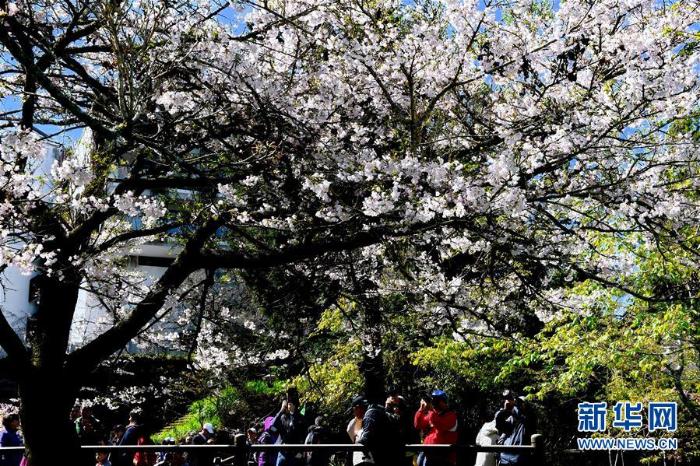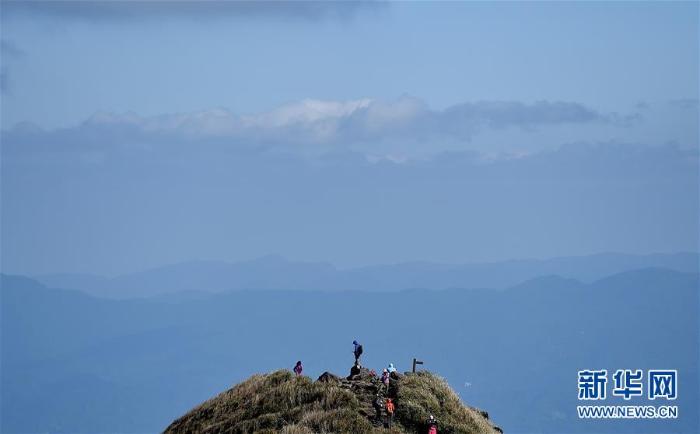 2018年3月10日,游客登上台湾阳明山公园的七星山东峰眺望