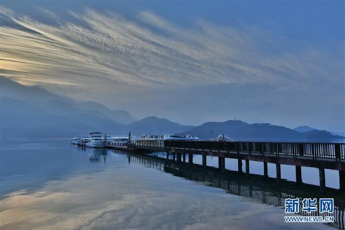 这是2017年1月8日拍摄的晨曦中的台湾日月潭