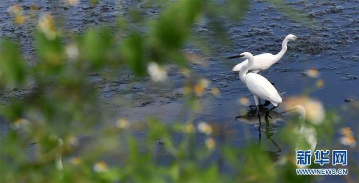 2016年11月28日,几只白鹭在台湾云林县成龙湿地栖息