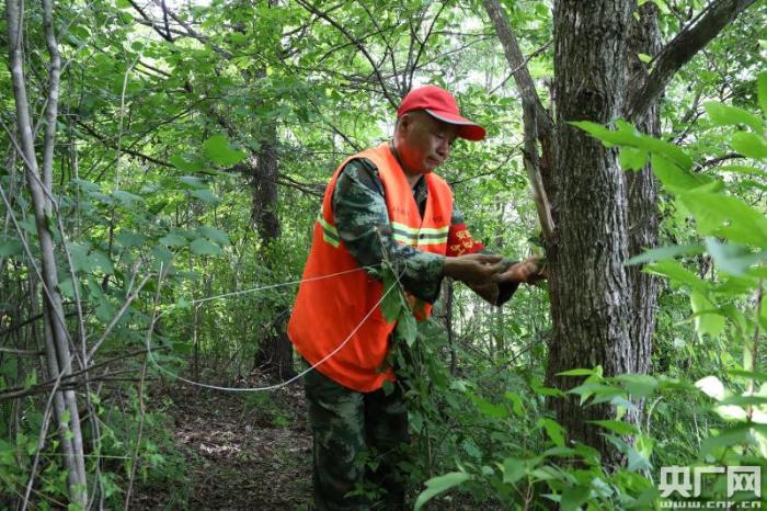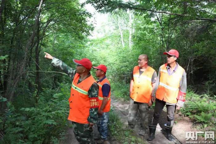 随着他前行的脚步,寂静的山林慢慢地开始有了各种声响。风穿过树叶的声音,喜鹊、乌鸦等各种鸟儿的啼鸣,远远地还能听到狍子的叫声。黄玉金负责95.17公顷林地的管护工作,这里的沟沟岔岔、一草一木,他都已经很熟悉了。
