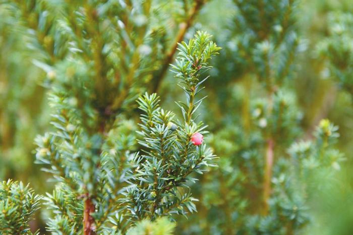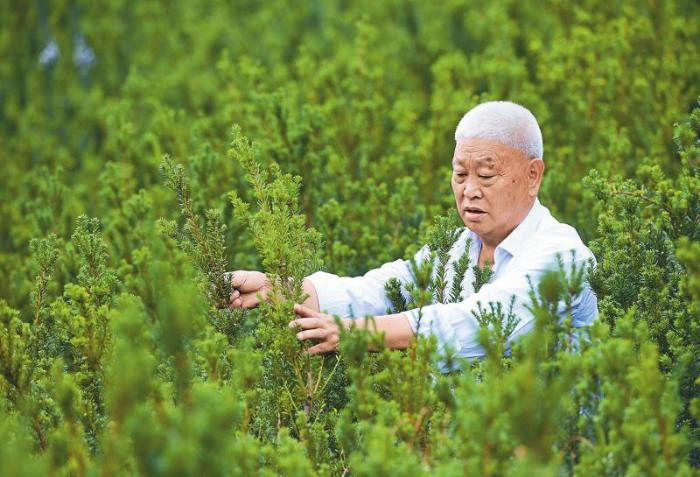 6月28日,胡孝怡在种植基地查看红豆杉长势