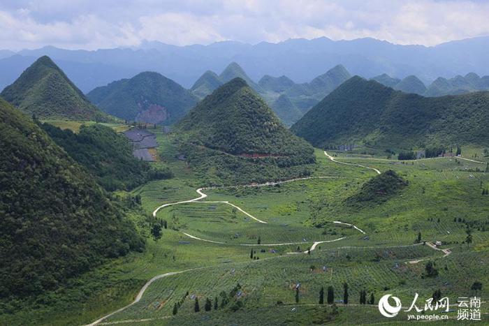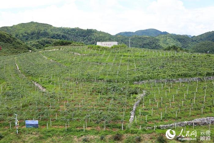 近日拍摄的治理后的石漠化片区,已种植猕猴桃 人民网