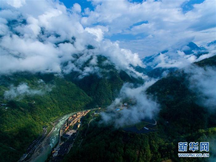 云雾缭绕的独龙江峡谷,高黎贡山与担当力卡山夹江而立(4月18日无人机拍摄) 新华社记者发
