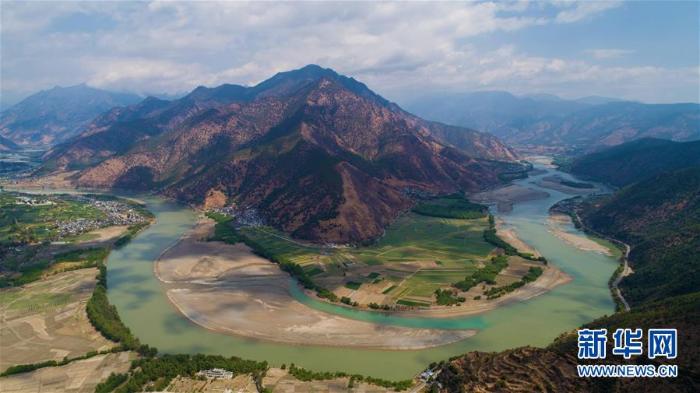 位于云南省丽江市玉龙纳西族自治县石鼓镇的“长江第一湾”(3月17日无人机拍摄) 新华社记者发