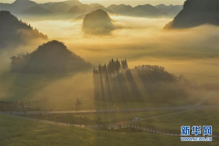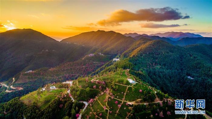 这是夕阳时分的云南南涧彝族自治县无量山樱花谷一景(2017年12月16日无人机拍摄) 新华社记者发