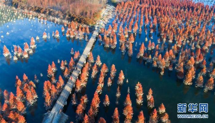 云南昆明水杉湿地冬日一景(1月5日无人机拍摄) 新华社记者发