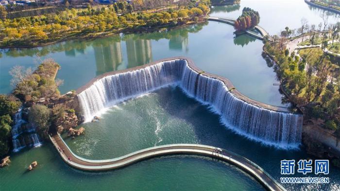 云南昆明瀑布公园一景(1月5日无人机拍摄) 新华社记者发