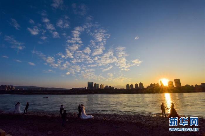 新人们在云南省景洪市澜沧江边拍婚纱照(2018年11月29日摄) 新华社记者发