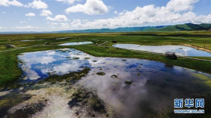 四川省红原县日干乔湿地里的小湖泊(7月30日无人机拍摄) 新华社发