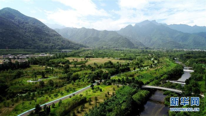 西安市长安区秦岭违建别墅“群贤别业”拆除后建设的秦岭和谐森林公园(7月26日无人机拍摄)  新华社记者发