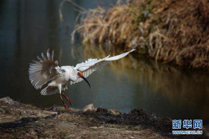 洋县朱鹮生态园内的朱鹮(2018年1月19日摄)。大熊猫、朱鹮、金丝猴、羚牛被誉为“秦岭四宝”  新华社记者发