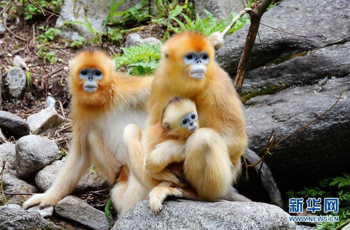 秦岭金丝猴在佛坪县熊猫谷内休憩(2018年8月3日摄)。大熊猫、朱鹮、金丝猴、羚牛被誉为“秦岭四宝”  新华社记者发