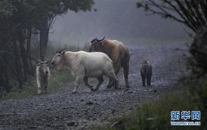 岭羚牛在森林中“漫步”(6月27日摄)。大熊猫、朱鹮、金丝猴、羚牛被誉为“秦岭四宝”  新华社记者发