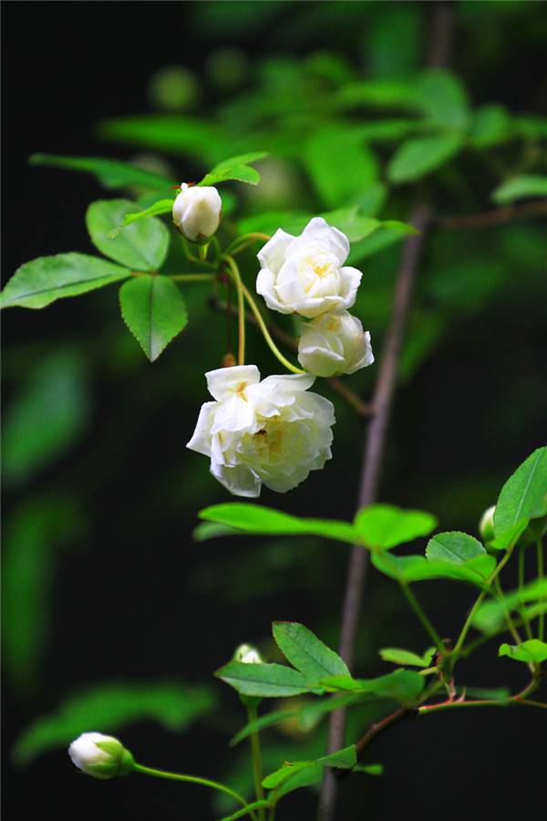 木香花在幽蓝的夜幕下闪着醒目的光,沁人心脾,别人说它没什么好的,在灯下璀璨晶莹,散发着浓烈馥郁的花香。没什么好的就是最好。