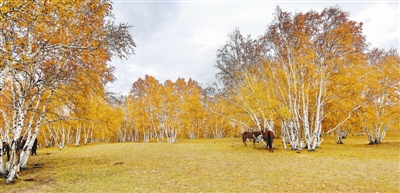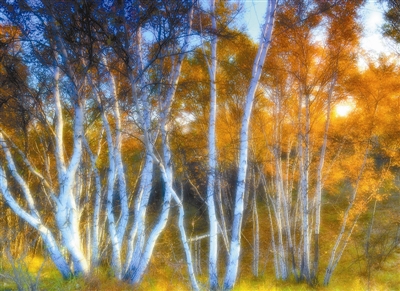 乌兰布统的白桦秋叶