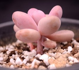 景天科风车草属。有桃蛋(桃之卵)原产自墨西哥的一种风车草,叶片肉质丰满,圆润,带有可爱的淡紫色,粉红色和绿色的色调。叶子表面带有厚厚的粉末覆盖。新长的叶子为粉紫色,随着叶子的变老,会慢慢变绿。生长季节有充足水分时,叶片很饱满圆润,当气温逐渐下降时要适当控水,保持土壤干燥。