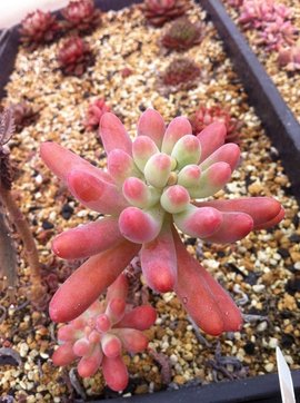 乙女心(学名:Sedum pachyphyllum景天科景天属的多肉植物,原产墨西哥。灌木状肉质植物。株高达30厘米。叶片簇生于茎顶,圆柱状,淡绿色或淡灰蓝色,叶先端具红色,叶长3~4厘米。花小,黄色。春秋为生长季,冬季气温保持在五度左右可安全越冬。