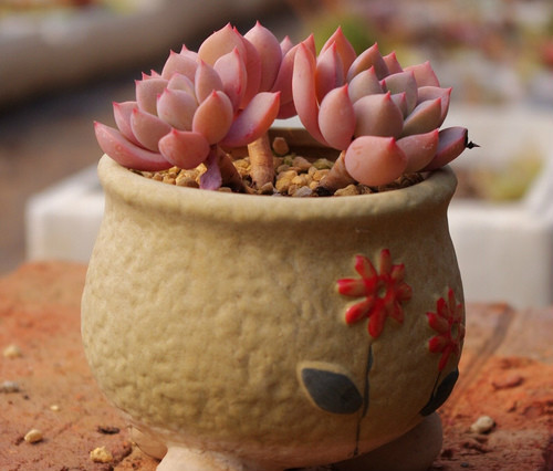 的叶片呈粉红色,饱满圆润,较容易群生,深得肉友青睐。