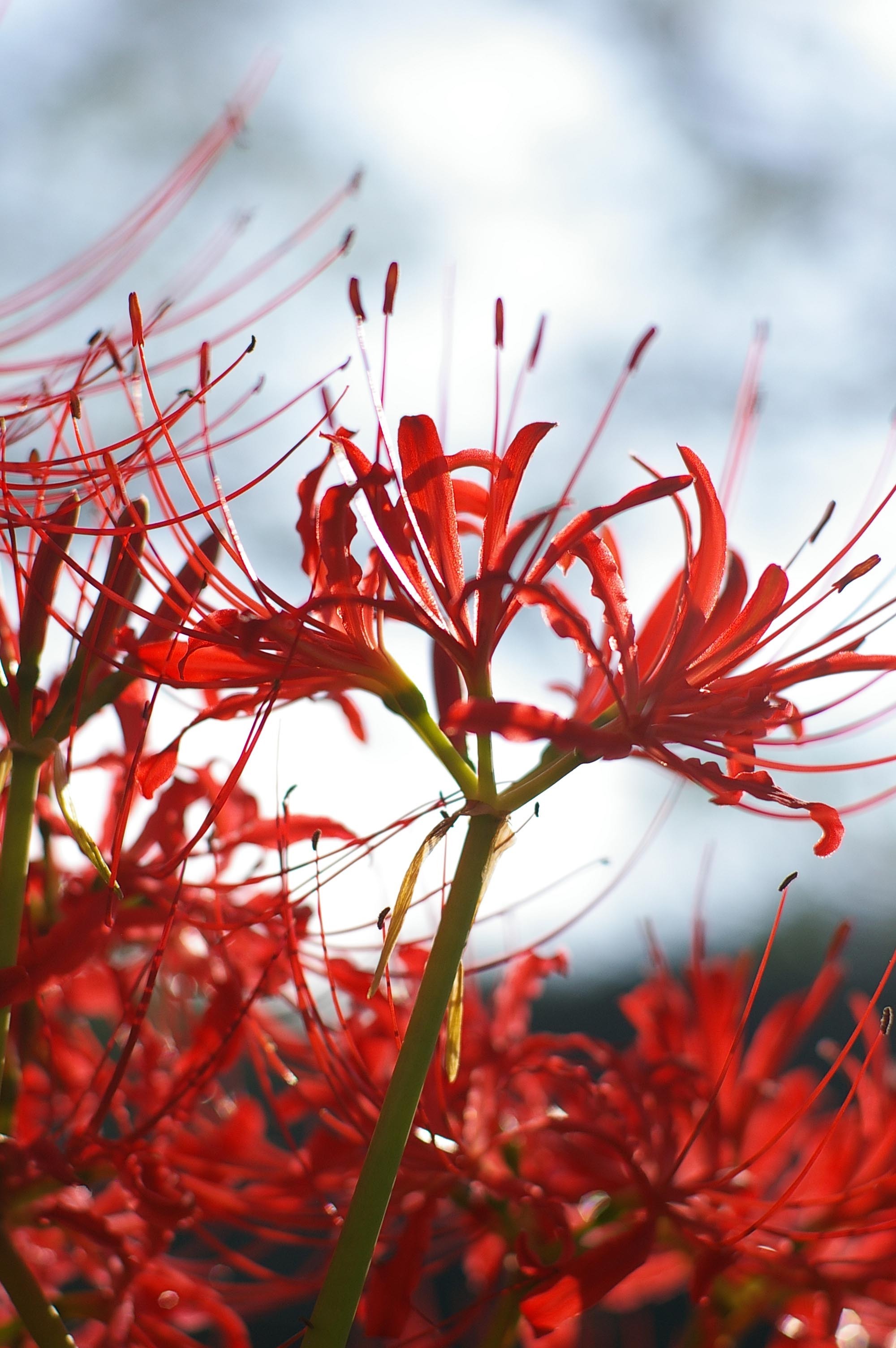 是石蒜的一个变种。多年生草本植物。地下茎肥厚。叶线形,于花期后自基部抽生。花葶高30-60厘米,伞形花序顶生,花鲜红,花筒较短,花被片狭倒披针形,向外翻卷,雄蕊及花柱伸出,姿态秀丽,花期9月。性喜阴湿环境,怕强光直射,宜生长于疏松肥沃的沙壤土。分植鳞茎繁殖,通常3-4年分栽一次。