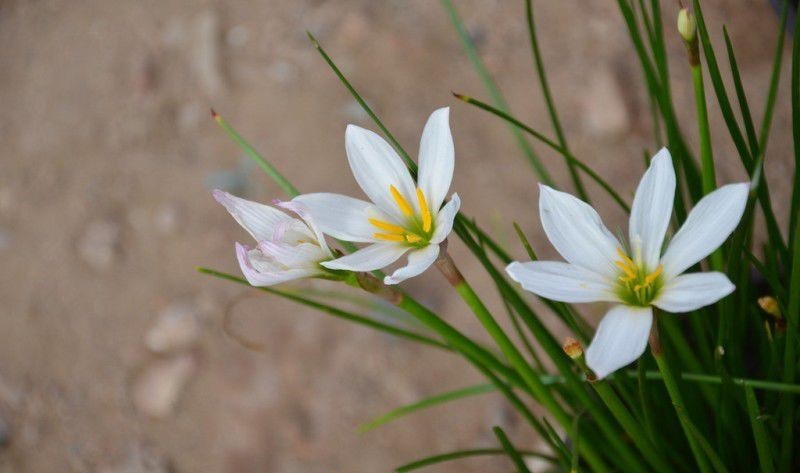 葱莲(学名:Zephyranthes candida (Lindl.)Herb.),又名玉帘、葱兰等,多年生草本植物,鳞茎卵形,直径约2.5厘米,具有明显的颈部,颈长2.5-5厘米。叶狭线形,肥厚,亮绿色,长20-30厘米,宽 2-4毫米。