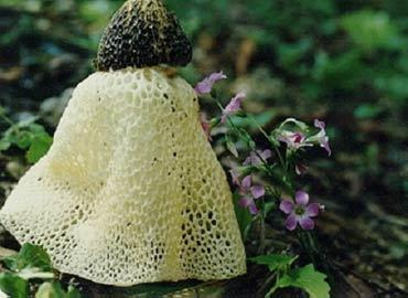 长裙竹荪又名竹荪、竹笙、竹参,竹荪为鬼笔目鬼笔科竹荪属中著名的食用菌,子实体中等至较大,幼时卵状球形,后伸长,菌盖钟形,柄白色,中空,壁海绵状,孢子椭圆形。竹荪口味鲜美,是著名的珍贵食用菌之一。对减肥、防癌、降血压、美白祛黑等均具有明显疗效。是中国的一项传统的土特产。每年夏秋季节,其中长裙竹荪产于福建、湖南、广东、广西、四川、云南、贵州等少数山区的竹林中。