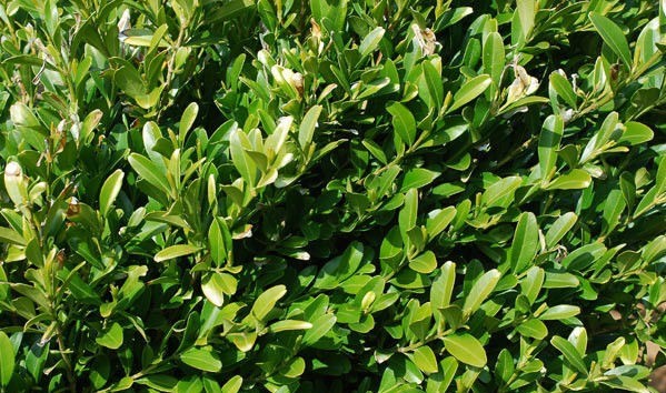 雀舌黄杨(学名:Buxus bodinieri Levl.):灌木,高3-4米;枝圆柱形;小枝四棱形,被短柔毛,后变无毛。叶薄革质,通常匙形,亦有狭卵形或倒卵形,叶面绿色,光亮,叶背苍灰色,中脉两面凸出,侧脉极多,在两面或仅叶面显著。花序腋生,头状,长5-6毫米,花密集;苞片卵形,背面无毛,或有短柔毛;雄花:约10朵。蒴果卵形,长5毫米,宿存花柱直立,长3-4毫米。花期2月,果期5-8月。