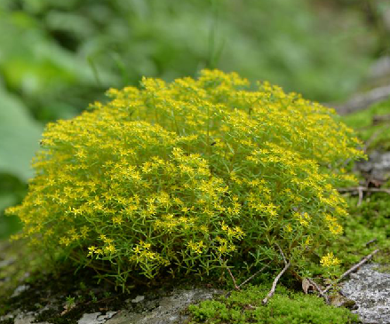 佛甲草(学名:Sedum lineare Thunb.)景天科多年生草本植物,无毛。茎高10-20厘米。3叶轮生,少有4叶轮或对生的,叶线形,先端钝尖,基部无柄,有短距。花序聚伞状,顶生,疏生花,中央有一朵有短梗的花;萼片线状披针形。蓇葖略叉开,花柱短;种子小。花期4-5月,果期6-7月。