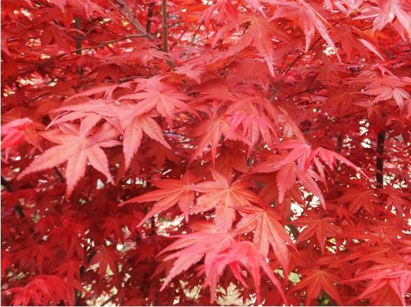 美国红枫(学名:Acer rubrum L.):原产美国东海岸,主要来自于美国北部以及加拿大大部分地区。是落叶大乔木。生长较快,成年高树12-18米,冠幅12米,能适应多种范围的土壤类型生长。春天开花,花红色。因其秋季色彩夺目,树冠整洁,被广泛应用于公园、小区、街道栽植,既可以园林造景又可以做行道树,深受人们的喜爱,是近几年引进的美化、绿化城市园林的理想珍稀树种之一。也是唯一可以用做行道树的彩叶树种。