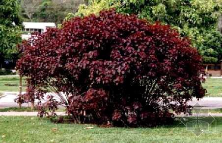 肖黄栌,紫锦木(Euphorbia cotinifolia L.)为灌木,叶染褐红色,作为观叶植物极似漆树科黄栌,故名肖黄栌。其实只需折断枝叶见流乳白汁,此乃大戟科许多种类的特征,足以分辨。