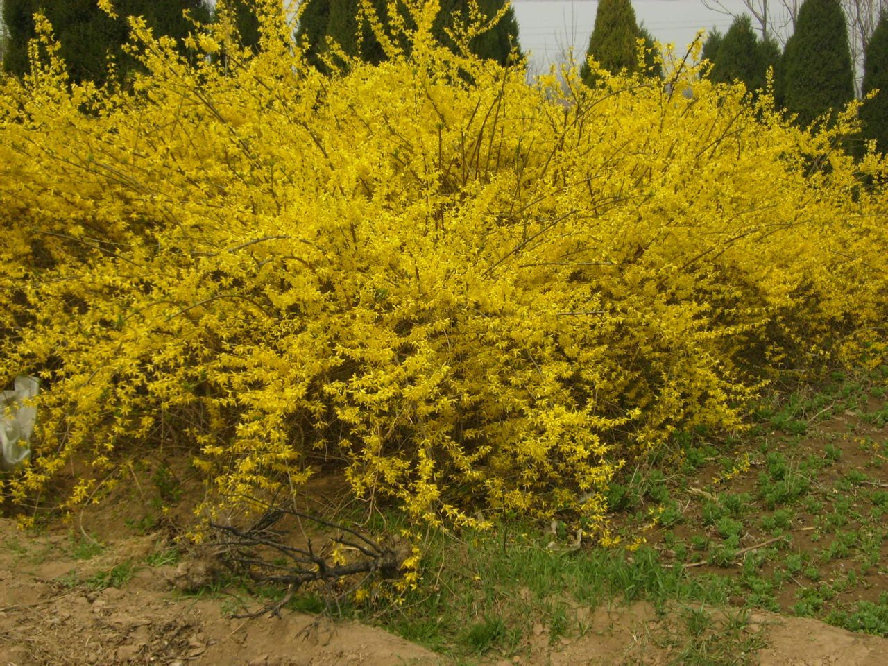 金钟连翘,是木犀科,连翘属,是连翘与金钟花的杂交种,花期3-4月,生长旺盛,绿叶期限长,为3月-翌年1月,为美国园艺品种,耐修剪,适应性强,是街道和庭院绿化的好树种,为晚秋初冬的翠绿风景线。又是珍贵的庭院观赏树种。