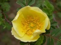 黄刺梅为蔷薇科、蔷薇属落叶灌木,高1-3米。 因其具皮刺, 花瓣多重瓣,花色鲜艳如玫瑰,俗称刺玫花。黄花绿叶,绚丽多姿,株丛大,花色金黄,花期长,为庭园观赏植物,园林中可孤植观赏。奇数羽状复叶,互生或簇生于短枝上;花单生于短枝顶端,无苞片;直径约4厘米;萼裂片披针形,长约12毫米,先端渐尖,全缘,外面无毛,内面密被白色绒毛;花瓣重瓣,广倒卵形,长约2厘米,先端微凹,黄色;雄蕊长约5毫米。