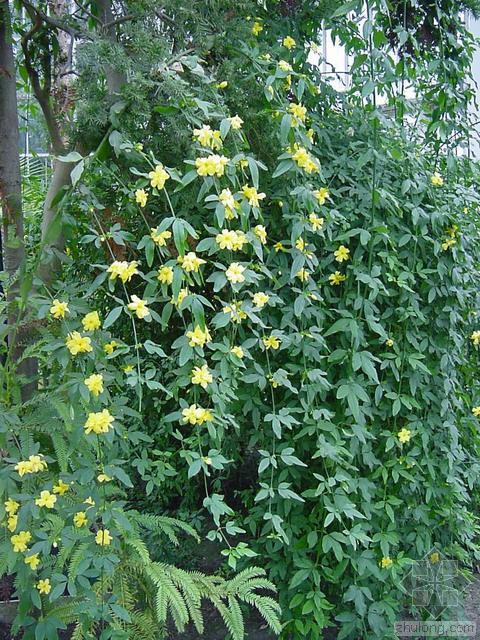 云南黄馨,别名:野迎春、梅氏茉莉、云南迎春、云南黄素馨、金腰带、南迎春,金铃花,拉丁文名:Jasminum mesnyi Hance 属木犀科、素馨属常绿直立亚灌木,高0.5-5米,枝条下垂。小枝四棱形,具沟,光滑无毛。适合花架绿篱或坡地高地悬垂栽培。主要产在我国云南省,生长于海拔500米至2600米的地区,一般生于峡谷或丛林中。