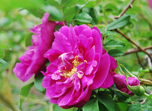 小叶较大,通常5~7;花粉红,花较大,单瓣,平顶伞房花序;果实较小,少种子或无种子。系玫瑰的一个变种,在上海表现为半常绿灌木。外形基本和皱叶蔷薇Rosa rugosa一致。并非藤本粉团蔷薇。
