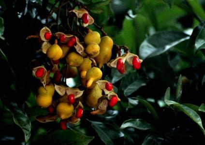 海南红豆(学名:Ormosia pinnata (Lour.)Merr.),为豆科常绿乔木或灌木植物,高3-18米,稀达25米,胸径30厘米。原产中国海南,圆锥花序顶生,花冠淡粉红色带黄白色或白色。果实为荚果,内有红色的种子。喜光,对土壤要求严格,喜酸性土壤,喜肥水,抗风。生长较为缓慢,移栽成活较难。树冠圆球形,枝叶繁茂,绿荫效果好。适合作行道树、园景树和庭荫树。