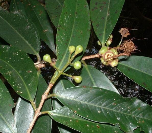 蒲桃(学名:Syzygium jambos(L.)Alston)为桃金娘科的常绿乔木,高10米,主干极短,广分枝;叶片革质,披针形或长圆形;聚伞花序顶生,花瓣分离,阔卵形;果实球形,果皮肉质,直径3-5厘米,成熟时黄色;种子1-2颗,多胚。花期3-4月,果实5-6月成熟。
