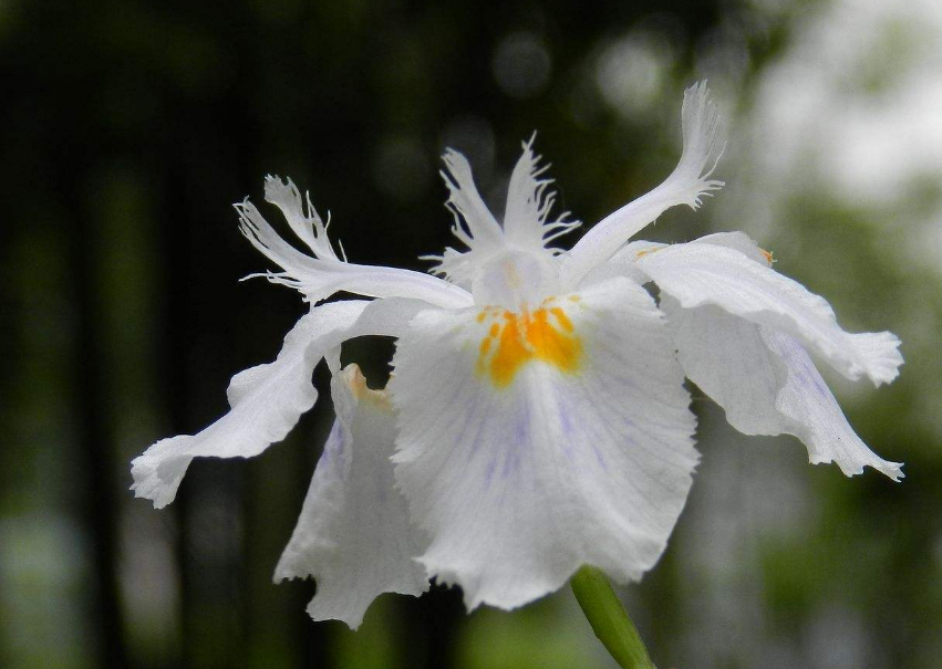 白花鸢尾(学名:Iris tectorum f. alba)为鸢尾科鸢尾属鸢尾下的一个变型。多年生草本,植株基部围有老叶残留的膜质叶鞘及纤维。本变型花白色,外花被裂片爪部带有浅黄色斑纹,其他性状与原变型相同。产于浙江(杭州下天竺);各地庭园中常见栽培。