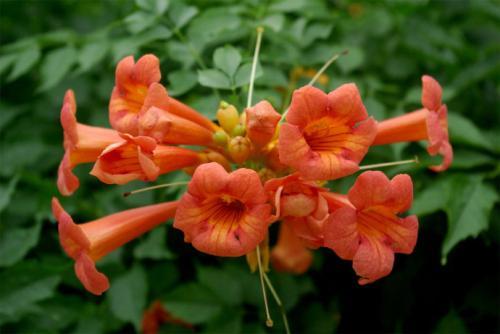 厚萼凌霄(学名:Campsis radicans (L.) Seem.),美国凌霄(中国树木分类学)、杜凌霄(江苏、湖南),是紫葳科紫葳属的植物。厚萼凌霄干枝虬曲多姿,翠叶团团如盖,花大色艳,花期甚长 ,为庭园中棚架、花门之良好绿化材料,用于攀援墙垣、枯树、石壁,均极适宜、