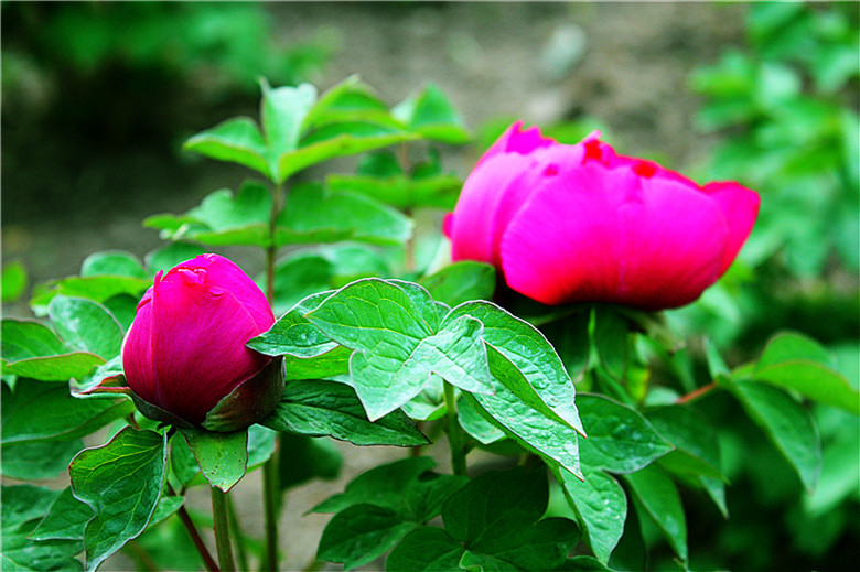 株型高,直立,枝粗硬。花皇冠型,深紫红色。属于高度特异化的花型,花外瓣大而平展,花内雄蕊全部瓣化,形成多层次的大型花朵,是牡丹中的奇品。