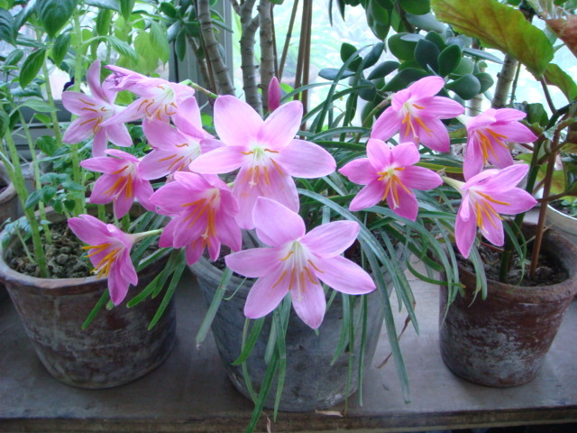 石蒜科,别名韭菜莲(北京),赛番红花(广西、贵州),旱水仙、空心韭菜(贵州),菖蒲莲、红玉帘、风雨花(华北)、红菖蒲莲(北京),株高约15-30厘米,成株丛生状。叶片线形,极似韭菜。花茎自叶丛中抽出,花花瓣6枚。小韭兰呈浓桃红色,成株每个鳞茎都能开花。原产墨西哥南部至危地马拉,我国南北各地庭园都引种栽培,贵州、广西、云南常见。