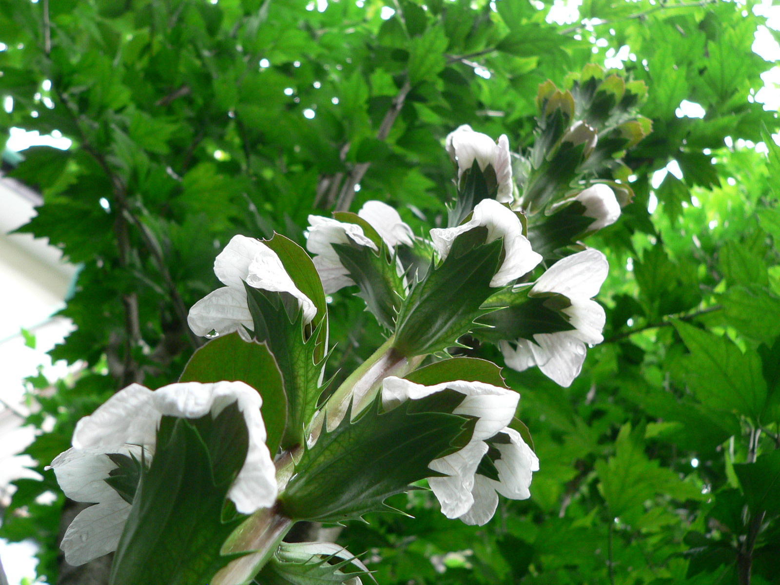 虾膜花(Acanthus mollis)为爵床科多年生草本。花期5月—9月,果熟期10月—11月。产地中海沿岸国家。我国各地有引种栽培。