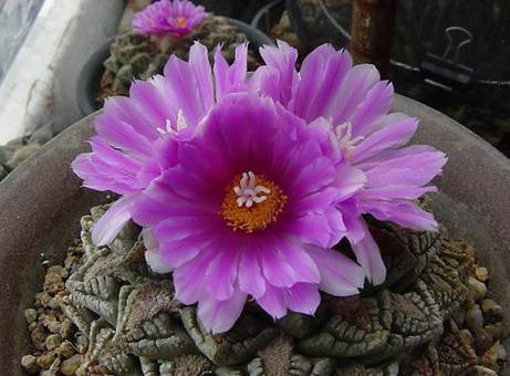 岩牡丹属植物主要分布在墨西哥北部德克萨斯和新墨西哥州地区,由于常年的干旱炎热气候,该属整个植株在原产地几乎全埋在地下。植株大多单生,成年株偶尔会从基孳生仔球,具甜菜状的肥大直根,植株地上呈莲座状,顶端附生乳白色绒毛。体色青绿色,附生白粉,株幅根据品种不同从7-20厘米不等,疣状突起呈肥厚三角形。它们现正处于濒危,在野外颇为稀有。