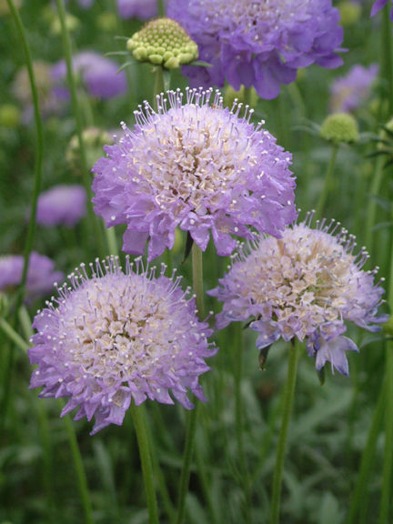 紫盆花花色变化很多,花期长。适宜布置花坛和花境,亦可盆栽或作切花