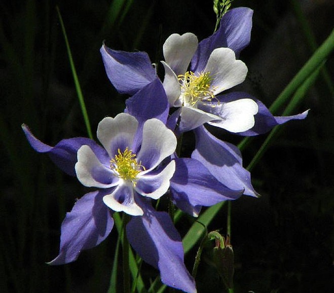大花耧斗菜(Aquilegia glandulosa Fisch. ex Link.)属毛茛目,毛茛科植物,高20-40厘米,叶片轮廓三角形,苞片披针形至长圆形,花瓣瓣片蓝色或白色,近直立,圆状卵形,蓇葖长2-3厘米,顶端宿存花柱长6-7毫米。6-8月开花。