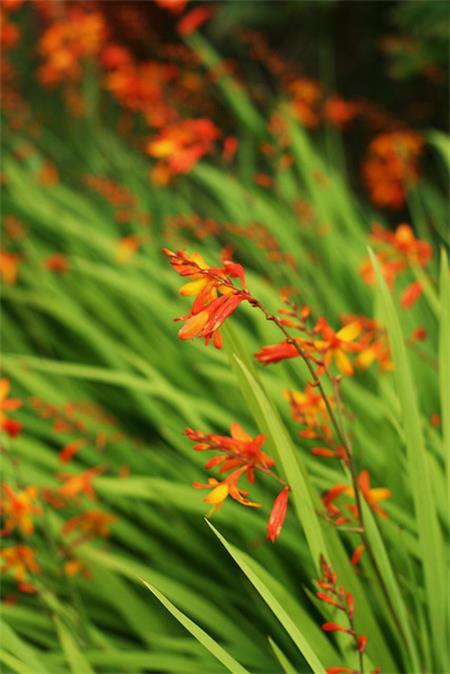 火星花(拉丁学名:Crocosmia crocosmiflora N. E. Br.)原产非洲南部,别名雄黄兰,为本属植物帕氏火星花和黄火星花的杂交种。喜充足阳光,耐寒。在长江中下游地区球茎露地能越冬。适宜生长于排水良好、疏松肥沃的沙壤土,生育期要求土壤有充足水分。生于山坡荫湿处。仲夏季节花开不绝,是布置花境、花坛和作切花的好材料。