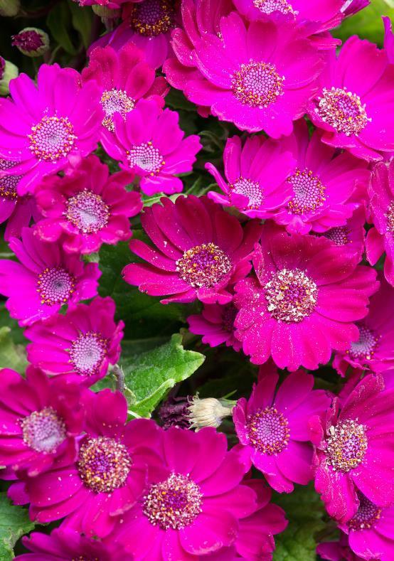 瓜叶菊(学名:Pericallis hybrida),别称富贵菊、黄瓜花。多年生草本,常作1-2年生栽培。分为高生种和矮生种,20-90厘米不等。全株被微毛,叶片大形如瓜叶,绿色光亮。花顶生,头状花序多数聚合成伞房花序,花序密集覆盖于枝顶,常呈锅底形,花色丰富,除黄色其他颜色均有,还有红白相间的复色,花期1-4月。瓜叶菊的花语是:喜悦,快活,快乐,合家欢喜,繁荣昌盛。适宜在春节期间送给亲友,此花色彩鲜艳,体现美好的心意。