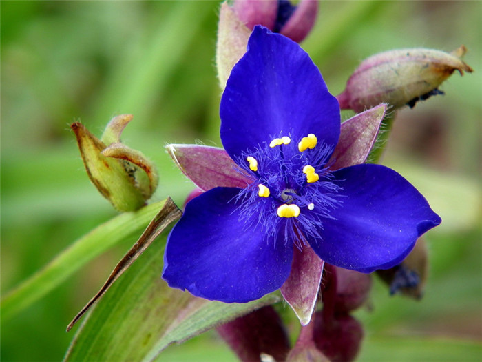 紫露草(拉丁学名:Tradescantia ohiensisRaf.),是鸭跖草科紫露草属多年生草本植物。茎多分枝,带肉质,紫红色,花瓣蓝紫色,广卵形;蒴果椭圆形。 紫露草原产于美洲热带地区,中国有引种栽培。 由于花期长、株形奇特秀美。树丛下片植,与鸢尾花长叶配植,株形、花蕾与花序适宜观赏。用于花坛、道路两侧丛植效果较好,也可盆栽供室内摆设,或作垂吊式栽培。