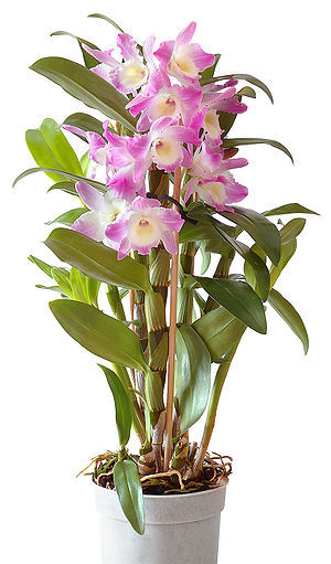 春石斛又名美花石斛,因春天开花而得名,为兰科、石斛属,多年生附生兰本植物,与常见的秋石斛相比,具有株形紧凑、花多、色艳、有香味,且管理粗放等特点,是近年来比较浒的盆栽花卉之一。春石斛的始祖是原产于中国的金钗石斛,最先由英国引入欧洲栽培,并进行改良和育种。第二次世界大战后,日本大力发展春石斛,与其他品种的石斛杂交,培育出许多园艺品种。春石斛按颜色的不同,可分为红花系、白花系、黄花系三大品系,每个品系又有不同的品种。