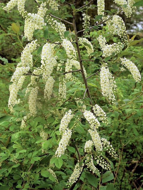 稠李(学名:Prunus padus L.)为蔷薇科稠李属落叶乔木,高可13m,树干皮灰褐色或黑褐色,浅纵裂,小枝紫褐色,有棱,幼枝灰绿色,近无毛,单叶互生,叶椭圆形。