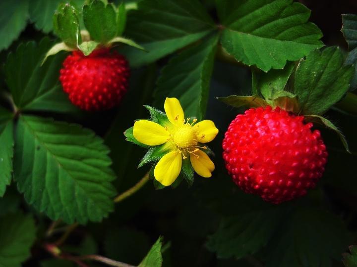 蛇莓(学名:Duchesnea indica (Andr.) Focke),别名:蛇泡草、龙吐珠、三爪风、鼻血果果、珠爪、蛇果、鸡冠果、野草莓、蛇藨、地莓、蚕莓、三点红、狮子尾、疗疮药、蛇蛋果、地锦、三匹风、蛇泡草、三皮风、三爪龙、老蛇泡、蛇蓉草、三脚虎、蛇皮藤、蛇八瓣、龙衔珠、小草莓、地杨梅、蛇不见、金蝉草、三叶藨、老蛇刺占、老蛇蔂、龙球草、蛇葡萄、蛇果藤、蛇枕头、蛇含草、蛇盘草、哈哈果、麻蛇果、九龙草、三匹草、蛇婆、蛇龟草、落地杨梅、红顶果、血疔草、野草莓。
