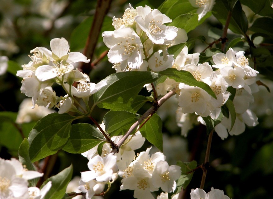 太平花(学名:Philadelphus pekinensis Rupr.):是虎耳草科、山梅花属中的一种北方山林常见多年生落叶灌木植物,枝叶茂密,花乳黄而清香,花多朵聚集,颇为美丽。叶对生,长卵形,缘疏生锯齿,子房半下位,3出脉。花5-9朵成总状花序;乳白色,微芳香;花瓣4,卵圆形;花期4-6月,果期8-10月。